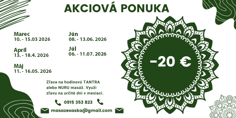 Tantra masáž: 60 min. 90€ | 90 min. 110€ | 120 min. 180€ (žena mužovi, žena žene)